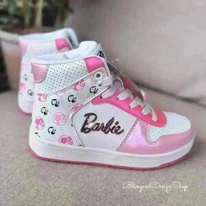 Bling Girls Barbie Pink High Top Sneakers Made with Black Crystals Girls Shoes