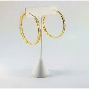 Bling & Glam! 18K Gold Filled Tube Hoop Earrings 1.90" Tall Sparkling Earrings