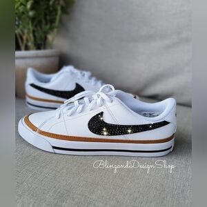 Bling Nike Court Legacy White Sneakers made with Black Crystals Custom Womens