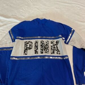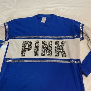Victoria’s Secret PINK Blue BLING Long Sleeve Animal Print Campus Crew