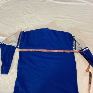 Stylish blue and white long sleeve shirt with sequin details.