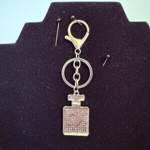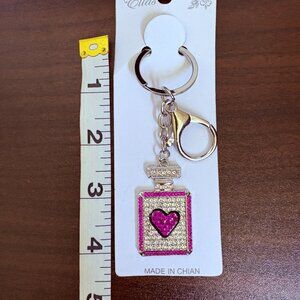 Bling Perfume Bottle with Heart Keychain Crystal Bag Charm New