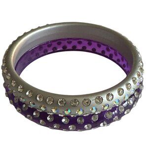 Bling Purple Silver 3 Row Rhinestone Acrylic Bangles Set of Two Fashion Jewelry