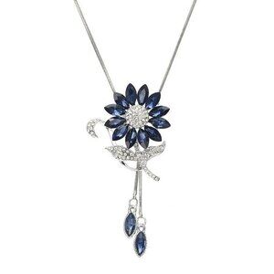 Bling Queen CZ Simulated Sapphire Sunflower Sliding Pendant Necklace