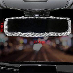 Specification: ITEM : Bling Rhinestone Car Rear View Mirror Crystal Diamond Rear View Mirror Cover for Women-Silver MATERIAL: ABS+ Glass + Crystal COLOR: Sliver SIZE: Universal Size (27.5*8.5*5cm) Qualitity: 1 piece