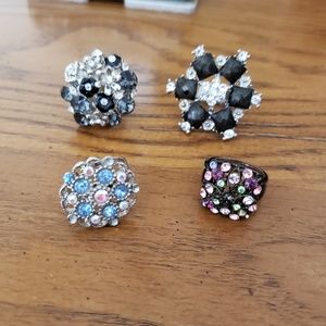 The rings on the top were worn once! the rings on the bottom are brand new. Bought from Kohls Department Store. One size fits all. Rings on top have stretchy band. Rings on bottom have band that can be moved to fit finger.