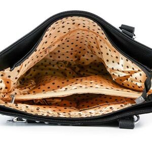 Get ready to turn heads with our Bling Skull Tote! Made of faux leather, this classic tote features an eye-catching design of sparkling skulls and a detachable tassel. The interior is lined and includes slip pockets and a zip pocket for organization. With a top zip closure and tablet compatibility, this tote is both stylish and functional. Approximate size is 15L x 10.5H x 4.5W