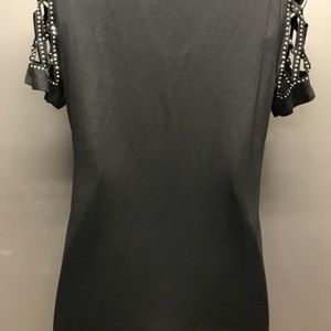 Sexy bling cut out shirt, I tried on and cut out the tag but never worn it out. Shows of the cleavage very nicely. Fitted yet flowy still. Brand new with out tags, this a boutique item so doesn't have a brand. Put Guess for views.