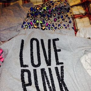 These 3 bling hoodies are a must have and a girls best friend(; cheetah is size medium zebra is size large and chevron is size medium all sequins are there and look great (: not sure if i would sell or trade right now but probably not (: