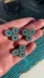 This is a beautiful set of three magnets. They are in a beautiful turquoise and clear crystals very sparkly. They’re a great addition to anybody’s office. Why not display items on your refrigerator in style!