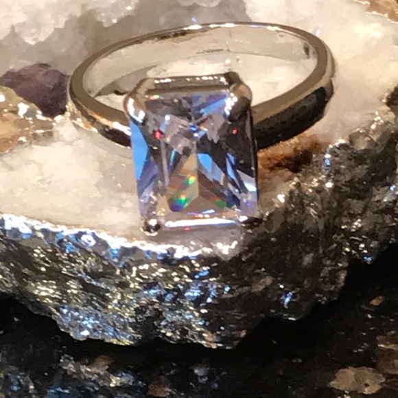 💎Beautiful 14k wt gold plated ring with princess cut cubic zirconia stone NWT 💍