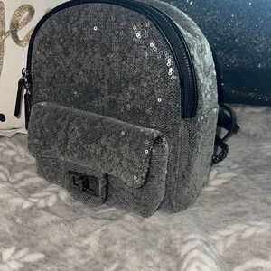 Beautiful nwot silver /grey glitter/sequin mini bag:backpack (7 x 8”h)