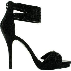 Bling-1 Women's Glitter Stiletto Ankle Cuff Back Zip Dress Sandals