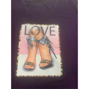 Ladies super cute black bling accent graphic Love High Heels T-shirt. Excellent condition. Ladies size 1X.
