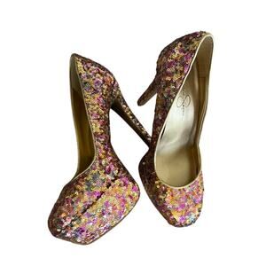 Blingy Cinderella Y2K Jessica Simpson sz 6 high heels sparkly colorful sexy