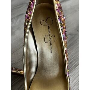 Step into a fairytale with these blingy Cinderella-inspired high heels! ✨ These Jessica Simpson Y2K heels are the perfect blend of sparkly, colorful, and sexy, adding a touch of magic to any outfit. Whether you're hitting the dance floor or want to make a statement, these heels will make you feel like a princess. Add some Y2K nostalgia to your shoe collection with these amazing blinged out heels! They are sure to turn heads and add a pop of color to any outfit. These sparkly heels are perfect for any special occasion or just a fun night out. Don't miss out on the chance to own these one-of-a-kind heels!