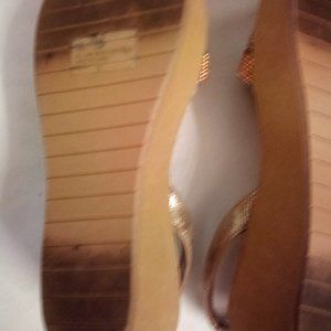 These are gorgeous! The color is copper (not gold) so they are unique. They have some wear on the soles, but have plenty of life left in them.
