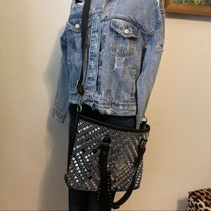 Shiny blingy Diamond bag with tassel, shoulder straps, and a crossbody strap that’s detachable.