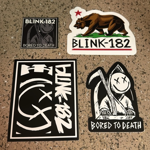 •two black and white themed stickers, one colored CA bear sticker, one cardboard promotional print