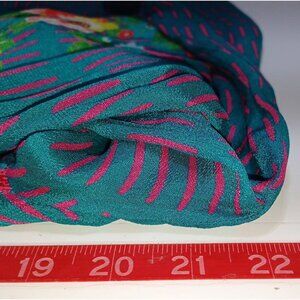 Colorful Blink London boho blouse in teal with bright pink floral embroidery, womens M.