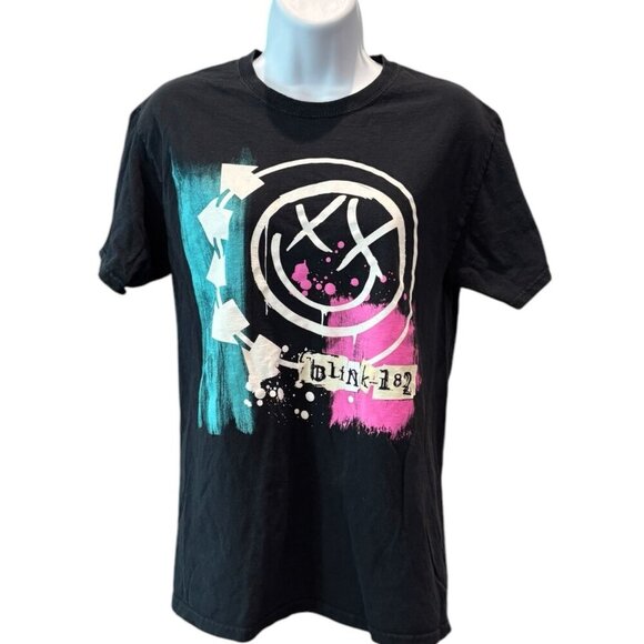 Pop-punk forever 🖤 This Blink-182 short sleeve tee features the iconic spray-paint smiley logo in teal + pink over black cotton. Perfect for fans, bandcore girls, or layered festival fits. Size Small (Women’s). Good used condition.