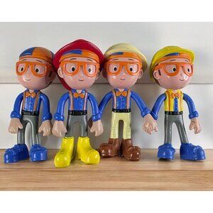 These 4 Blippi figures are in good condition. It includes a Blippi firefighter, Blippi Construction worker, Blippi Safari/Explorer, and the original Blippi. These are poseable/bendable. Some of them may have some paint chipped off, see photos.