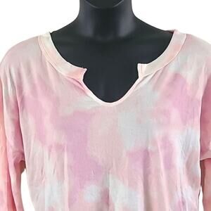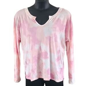 Blis, Women's Top, Long Sleeve Shirt, Tie-Dye Tee, Pink and White, Size Large, Pullover, Casual Top, Lounge Shirt, Soft Knit, Lightweight, Comfortable, Relaxed Fit, Spring Fashion, Fall Layer, Boho Style, Crew Neck, Pastel Colors, Trendy Tee, Weekend Wear