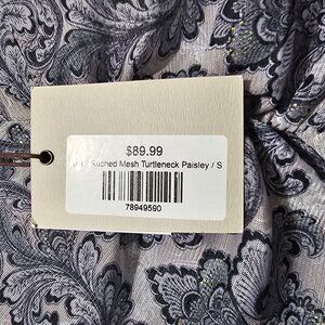 This Bliss ruched mesh turtleneck blouse offers a sophisticated look suitable for professional settings. Its paisley design adds elegance, while the lightweight fabric ensures comfort throughout the day.
