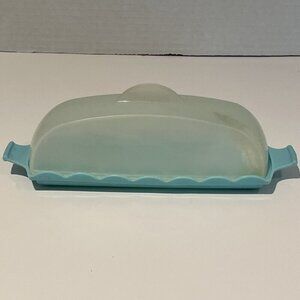 Blisscraft of Hollywood Butter Dish with Frosted Lid Teal Plastic Tableware MCM