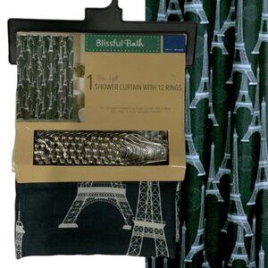 Blissful Bath Paris Shower Curtain Fabric Paris Eiffel Tower Hooks Black White