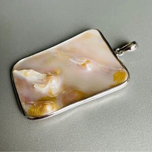 Stunning Blister Pearls Mother Of Pearl Shell Rectangle Pendant Sterling Silver Edge & Bail
