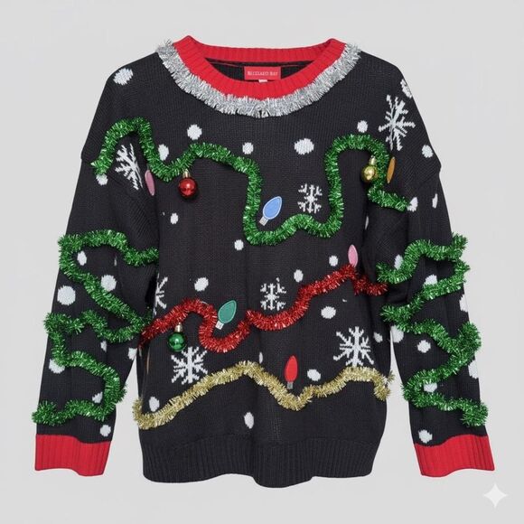 Blizzard Bay Black Knit Ugly Christmas Sweater Size XL