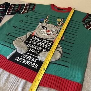 Blizzard Bay Christmas Sweater Cat Mugshot Size L Funny Ugly Xmas Tree Destroyer