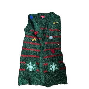 Blizzard Bay Tacky Christmas Long Sweater Vest Tinsel Green Red Embellishment M