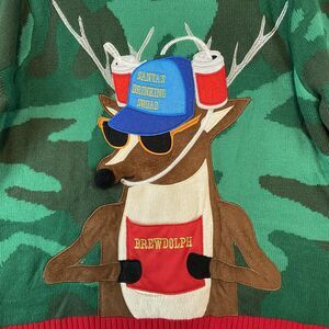 Blizzard Bay Ugly Christmas Sweater Men XL Camo Santa's Drinking Squad Brewdolph
