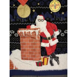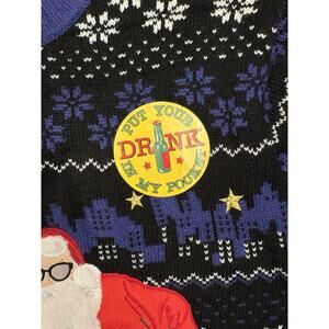 Blizzard Bay Ugly Christmas Sweater Santa With Drink Holder Size Large NWT