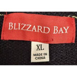 Celebrate the festive season with a touch of whimsy. This Blizzard Bay sweater features a playful pug design adorned with reindeer antlers with pom poms and a Santa hat, embodying the holiday spirit. The blend of black, red, and green colors, coupled with snowflake and Christmas tree patterns, adds a cheerful touch. Size XL. Pre owned in good condition.