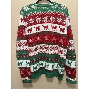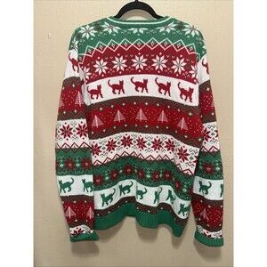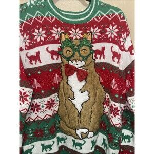 Keywords: Blizzard Bay, Christmas sweater, ugly sweater, holiday sweater, cat sweater, novelty sweater, pullover, XL, extra large, holiday, party, red, green, cat with glasses, festive