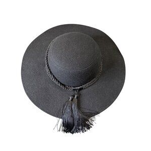 Blk Guess Wool Felt Balero Saturno Wide-Brimmed Hat Braided Cord Tassel Western