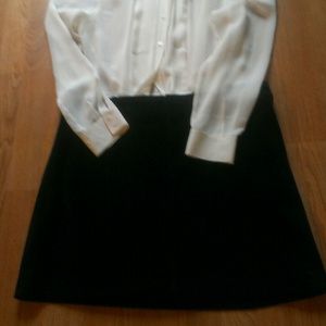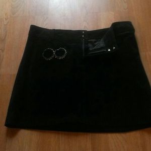 Black Suade mini with zipper in the front belt loops and two pockets in the back. Lining inside (Will show better pictures soon) only worn once or twice.