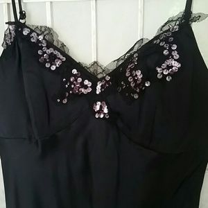 Gorgeous fit slip dress silk with lace and light violet sequins . below knee.... kind of retro..no need for bra all line on top with bra already built in...