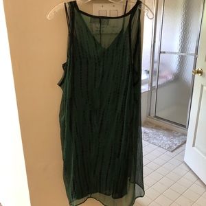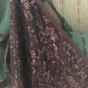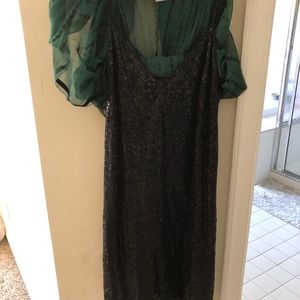 Extremely sheik black sequined spaghetti string sexy dress with green shear silk overlay. Worn once - In excellent like new condition.
