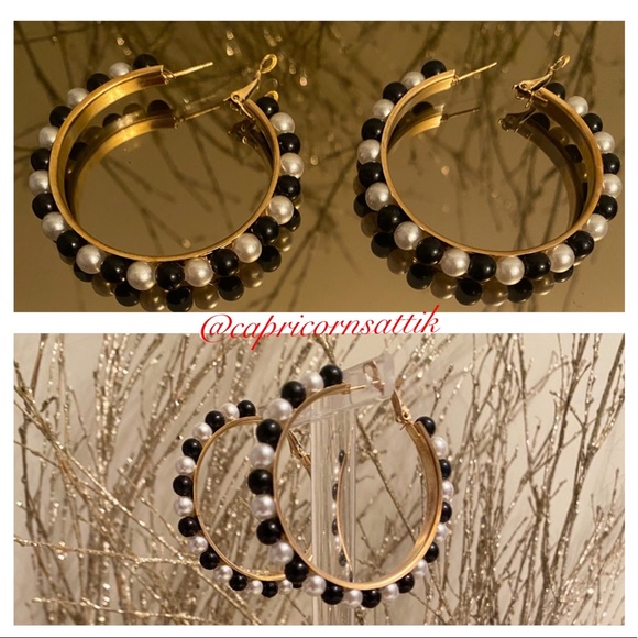 Blk/Wht Pearl Hoops✨✨