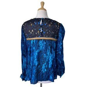 Blank London Anthropologie Miranda Peasant Blouse Blue Leopard