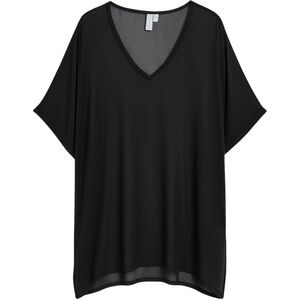 Bl-nk London 100% viscose sheer black swim cover-up from the brand’s London showroom, part of the Summer 2024 / Resort 2025 collection. The brand is known for being stocked at Anthropologie and Revolve. Lightweight, breathable, and oversized with a relaxed V-neck silhouette and dropped shoulders. Labeled a size Small, fits comfortably up to a size XL. No flaws.