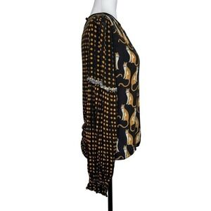 Bl^nk London Blouse Long Sleeve Top Cats Cheetah Black Size XS New