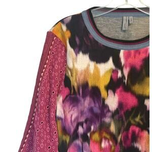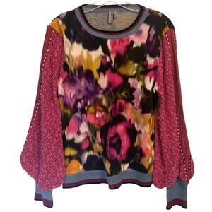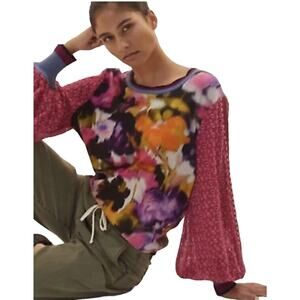 Bl^nk London Floral Eyelet Pullover Size XS Oversized Balloon Sleeve Anthro Top