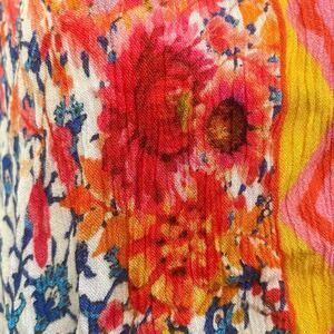 Open front kimono top. Beautiful floral prints. Crinkle woven gauzy material. 3/4 sleeve.
