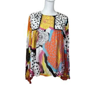 BL^nk London Miranda Peasant blouse, black/white/multi, small