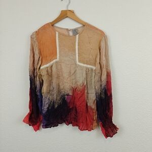 Bl^nk London x Anthropologie MIRANDA Brush Strokes Eclectic Red Sheer Top PS